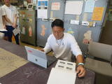 校舎を回っていると、技術では完成したラジオで、放送を聞いていました。