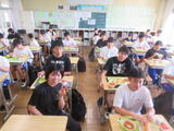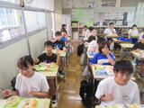 今日の給食風景は、2年3組。放送委員さん、ごくろうさま。
