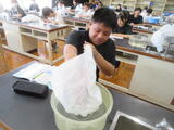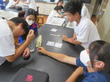 今日は1年生前半(1、2組)の授業を参観しました。1組は理科。溶解度の確認と結晶づくりの実験が行われていました。
