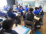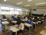 今日は、3年生前半(1、2、3組)の授業を参観しました。1組は社会。これまでの学習をワークで振り返っていました。