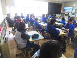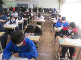 2月12日(木)、今日はみかも学級の授業を参観しました。1、2組は英語。be動詞+ ~ing を使った先生の英文を聞いて、カルタ取りをしていました。