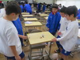4組は技術。木材加工で、本棚やラックなど自分で選んだものの作製していました。