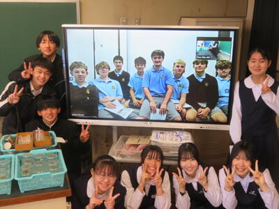 今朝はオンラインで、ニュージーランドのファンガレイ市の中学生との交流会がありました。昨夏ファンガレイを訪れた3名の生徒と生徒会本部役員が、本校の紹介をしました。その後、ファンガレイ市の中学生が日本語で自己紹介をしたり、ファンガレイ市の紹介をしたりしてくれました。その後互いに質疑応答が行われました。大変有意義な時間を過ごすことができました。参加した皆さん、グッジョブ。市教委の担当の方には大変お世話になりました。