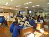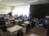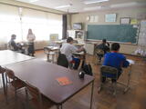 2組は社会。東北地方の1時間目で、写真を見て特色を確認していました。