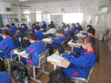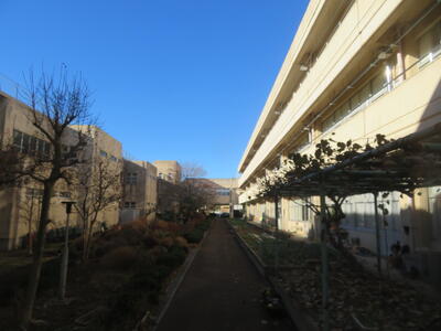 今日は、2年生前半(1、2、3組)の授業を参観しました。1組は体育。女子は体育館でバスケットボール。