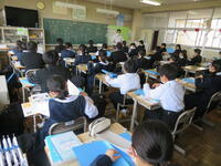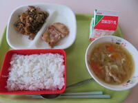 4月17日(水)、今朝は1年生の学年集会が体育館で行われ、学校生活や交通安全についての話がありました。また今日は、みかも学級と3学年の歯科検診がありました。歯科医の先生には、お忙しいところ大変お世話になりました。今日は、2年生(後半4組、5組、6組)の授業を参観しました。4組は社会。織田信長と豊臣秀吉は、どのように全国統一を進めたのか、資料をもとに考えていました。5・6組は体育館で体育。集団行動について班ごとの確認をしていました。また、中庭では1年生が花を調べる学習に、校庭では3年生が50m走に、それぞれ取り組んでいました。今日の給食風景は2年1組。今日は水曜日で、部活動なしの一斉下校でした。