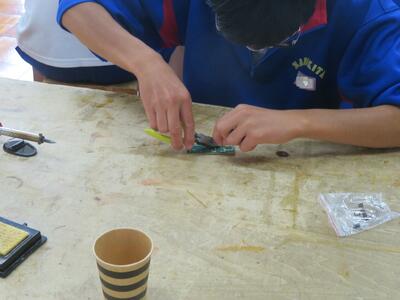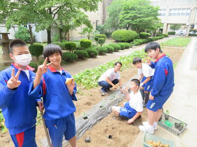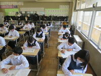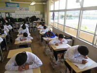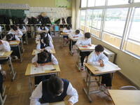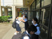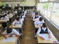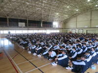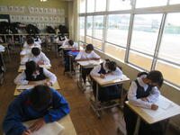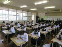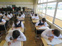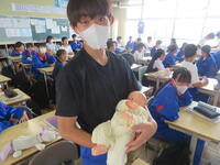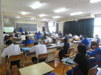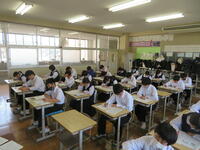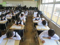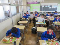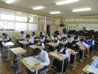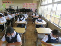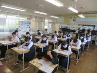 6月7日(金)、今朝は修学旅行の荷物の積み込みが行われていました。お手伝いしてくれた3年生の皆さん、ありがとうございました。今日は3年生(後半4、5、6組)の授業を参観しました。4組は理科。電解質の水溶液中でのようすについて学習していました。5組は技術。はんだごてを使って基板にはんだ付けする作業をしていました。6組は家庭科。保育の学習で、赤ちゃんの人形(出生時の平均的な身長・体重でつくられたもの)を、実際に抱いてみる活動を行っていました。今日の給食風景は1年2組。お昼の放送では、学校栄養士の先生から食に関する指導があり、よくかんで食べる大切さなどの話がありました。その後、先生は教室を回って給食の様子を見てくださいました。午後、3年生は体育館で修学旅行の最終の事前指導が行われていました。また、2年生は定期テストの結果が返却されていました。