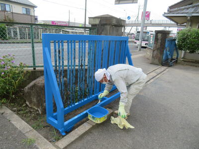 西門に続き、東門の門扉もきれいになりました。用務員さん、ありがとうございました。塗ってくださったものは「ペンキですか!」