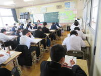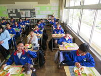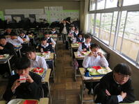 4月19日(金)、風の強い日となりました。今日は、1年生(後半4組、5組)の授業を参観しました。4組は社会。地球上の大陸と大洋は、どのように分布しているのか、世界ほどのように区分することができるか、学習していました。5組は理科。野外観察をしていました。今日の給食風景は2年2組。本日の午後は、先生たちの研修のため放課となりました。帰宅してからも、北中生としての自信と誇りをもって生活してください。大切なことは、「ルールを守る。他人に迷惑をかけない。」です。この2つのことができれば、大丈夫です。