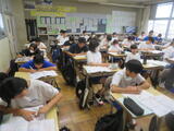 今日は1年生後半(3、4組)の授業を参観しました。3組は理科。水溶液に溶けている物質について、学習していました。