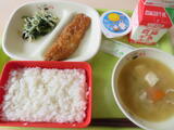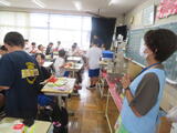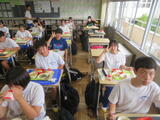 今日の給食風景は、2年4組。学校栄養士の先生から、中秋の名月、芋月のお話がありました、放送委員さん、ごくろうさま。