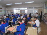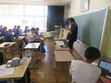 3組は英語。Lesson5の内容を、タブレットで確認していました。