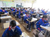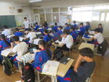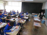 今日は3年生前半(1、2、3組)の授業を参観しました。1組は音楽。歌のテストでした。