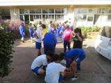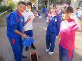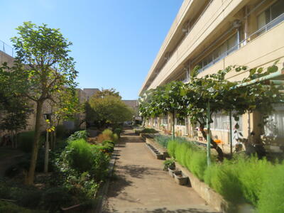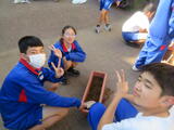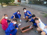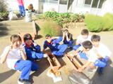 校舎を回っていると、2年生の技術では、はつかだいこんの種をまいていました。