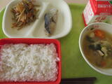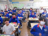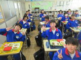 今日の給食風景は、3年2組。放送委員さんごくろうさま。
