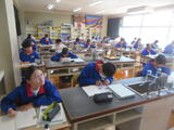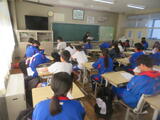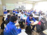今日は2年生後半(4、5組)の授業を参観しました。4組は理科。刺激の信号を伝えたり、反応したりするしくみについて学習していました。末しょう神経。