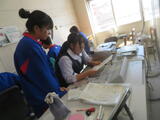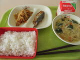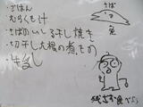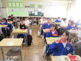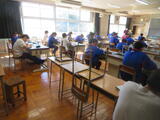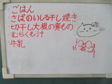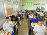 今日の給食風景は、3年4組。今日は選挙管理委員会から、生徒会役員選挙について、放送で公示がありました。放送委員さんごくろうさま。