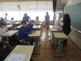 5組は英語。単元テストが返却され。答え合わせと解説が行われました。