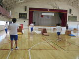 校舎を回っていると、体育館では、跳び箱運動が行われていました。