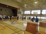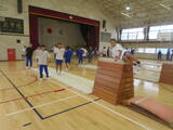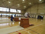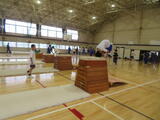 校舎を回っていると、体育館では跳び箱運動が行われていました。