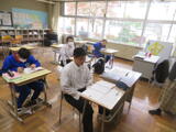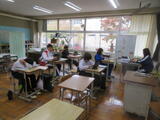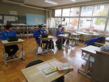 今日は、みかも学級の授業を参観しました。各自のペースで、数学や社会などの問題に、タブレットやワークを使い取り組んでいました。