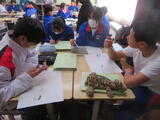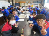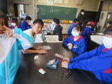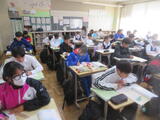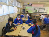 校舎を回っていると、3年生の家庭科では、幼児のおやつについて実際に味わいながら考えていました。