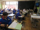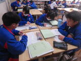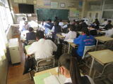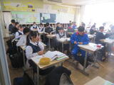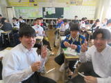 今日は、特別支援学校に通う生徒さんの居住地交流があり、1年1組の生徒たちといっしょに授業を受けました。班員と協力して問題に取り組み、楽しい時間を過ごすことができました。貴重な時間をありがとうございました。お世話になりました。また、お待ちしています。