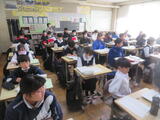午後は、小中交流見学・入学説明会があり、犬伏東小学校の6年生と保護者の方が来校してくれました。校長あいさつの後、授業見学。次のガイダンスでは、生徒会長のあいさつ、続いて、生徒会の皆さんが学校生活を寸劇で表現してくれました。その後○×クイズをしたり、小学生からの質問に答えたりしました。犬伏東小6年生の皆さん、入学を心待ちにしています。引率の先生方、お世話になりました。保護者の皆様、お忙しいところ御来校いただきまして、ありがとうございました。生徒会の皆さん、お疲れ様でした。グッジョブ!