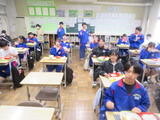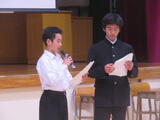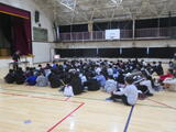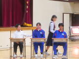 午後は、小中交流見学・入学説明会があり、犬伏小学校の6年生と保護者の方が来校してくれました。校長あいさつの後、授業見学。次のガイダンスでは、生徒会長のあいさつ、続いて、生徒会の皆さんが学校生活を寸劇で表現してくれました。その後○×クイズをしたり、小学生からの質問に答えたりしました。犬伏小6年生の皆さん、入学を心待ちにしています。引率の先生方、お世話になりました。保護者の皆様、お忙しいところ御来校いただきまして、ありがとうございました。生徒会の皆さん、お疲れ様でした。グッジョブ!