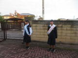 11月27日(木)、交通安全委員さん、委員会活動ごくろうさま。また、生徒会役員の選挙活動が行われていました。