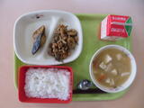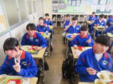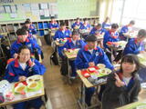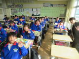 今日の給食風景は3年6組。放送委員さん、ごくろうさま。