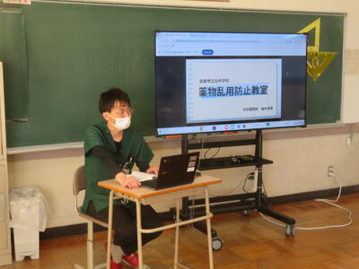 また、今日は、薬物乱用防止教室がありました。本校の学校薬剤師さんを講師にお迎えし、御講話をいただきました。薬物による健康や自己形成に及ぼす影響について理解を深め、自分の心や体を大切にし、どのように行動を選択したらよいか考えることができました。講師の先生には、お忙しいところ、大変お世話になりました。