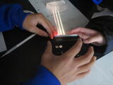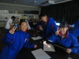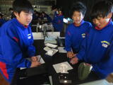 今日は、1年生前半(1、2組)の授業を参観しました。1組は理科。光の道すじについて実験していました。