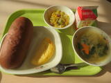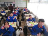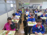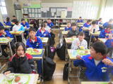今日の給食風景は2年4組。放送委員さん、ごくろうさま。