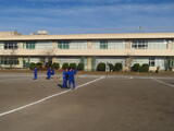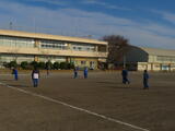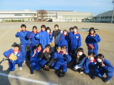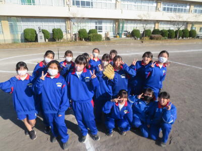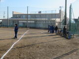 女子は校庭でソフトボール。