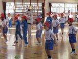 今日は、1年生後半(3、4組)の授業を参観しました。ともに体育。男子は体育館でダンス。