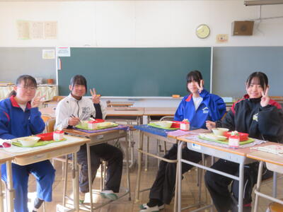3年生と校長との会食6日目。将来の夢や北中での思い出などを聞かせてもらいました。また後輩へアドバイスとして、「今、頑張っていることを最後まであきらめない。勉強も、部活動も全力で取り組み、学校生活を送ってほしいです。3年生になってから勉強をするのではなく、今のうちから1年生の復習をちょっとずつすれば、テストも安心して受けることができると思います。あとでやればいいや、じゃなくて、今のうちにやっておくことが大切です!」などがありました。ぜひ、参考にしてください。放送委員さんも、ごくろうさま。