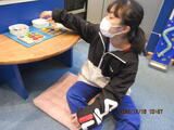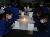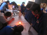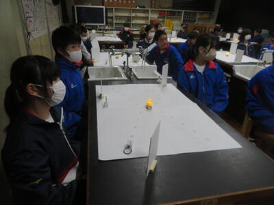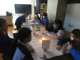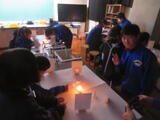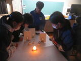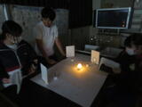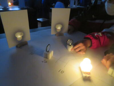 2組は理科。光の屈折について、凸レンズを使って実験をしていました。おやっ、アヒルが逆さまに写っているよ。