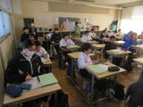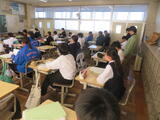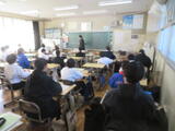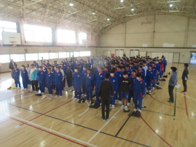 午後には、2年生が体育館で、スキー宿泊学習に向けた事前指導が行われていました。写真は合唱練習です。