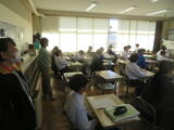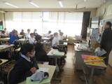 今日は、1年生前半(1、2組)の授業を参観しました。1組は数学。比例のグラフについて学習していました。