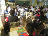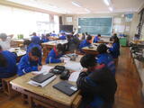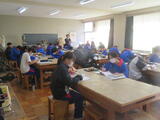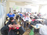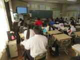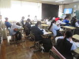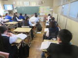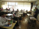 2組は社会。東北地方の1時間目で、写真を見て特色を確認していました。