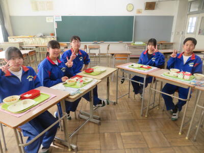 3年生と校長との会食12日目。将来の夢や北中での思い出などを聞かせてもらいました。また後輩へアドバイスとして、「勉強しといた方がいい。いっぱい楽しんだ方がいい。勉強はいつでも手を抜かず、一生懸命に取り組むと良い。学校行事は、ケガをしない程度で全力で楽しんだ方が良い。早めに受験勉強を始める。3年間はあっという間だから、楽しんだ方が良い。学習もしっかりとやっといた方が受験の時に大変じゃない。感謝の気持ちを忘れずに生活する」などがありました。ぜひ、参考にしてください。放送委員さんも、いつもごくろうさま。