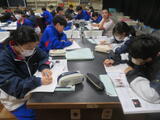 また、生徒指導担当からは、①外出は家族に「誰と、どこへ、何をしに、何時に帰る」を伝える。②友人宅に、外泊しない、させない。③人におごったり、おごらせたりしない。④冬休み中も、学校のルールを守る。⑤SNSは正しく使う。⑥困ったら相談窓口に助けを求める。の6点について話があり、生徒同士で確認していました。