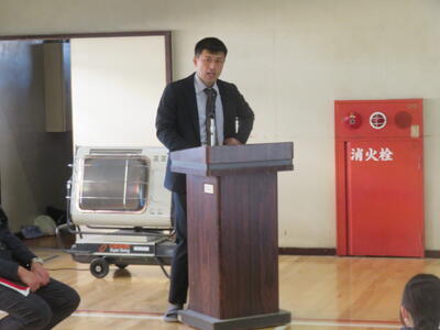 続いて、校長講話では、スライドを見ながら今年を振り返り、安全安心な冬休みを過ごしてほしい、などの話がありました。
