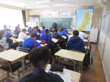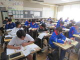 今日は2年生後半(4、5組)の授業を参観しました。4組は社会。東北地方のところで、伝統行事と生活・文化の変化について学習していました。
