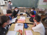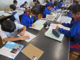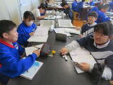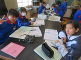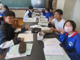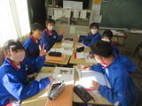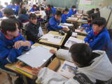 4組は国語。「少年の日の思い出 ヘルマン・ヘッセ 高橋健二 訳」のところで、主人公のとった行動について、なぜそうしたのかを班ごとで考えていました。