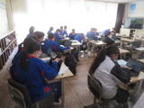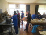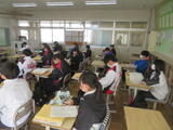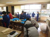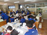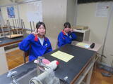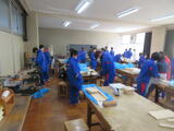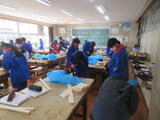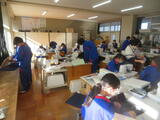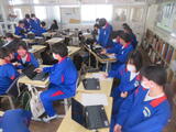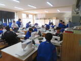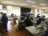 校舎を回っていると、被服室では、ミシンでざぶとん作りが行われていました。