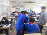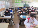 5組は数学。テストが返却され、解説と答え合わせが行われていました。