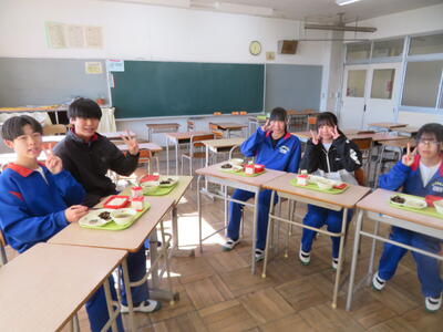 3年生と校長との会食23日目。将来の夢や北中での思い出などを聞かせてもらいました。また後輩へアドバイスとして、「3年生になる前から勉強したり、友達とたくさん遊んだりした方がいいと思います。予習や復習をきちんとした方がいいと思います。何事も少しずつやるといいと思う。分からない問題は、今のうちから分かるようにしておいた方がいいと思います。いっぱい遊ぶ!! 1、2年の頃から復習しておくとよい」などがありました。ぜひ、参考にしてください。放送委員さんも、いつもごくろうさま。