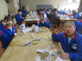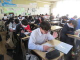 今日は2年生後半(4、5組)の授業を参観しました。4組は技術。ラジオ製作の作業に取り組んでいました。